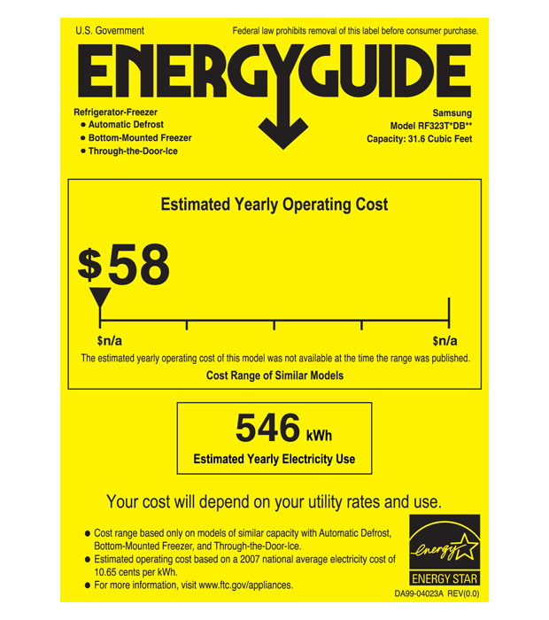 The RF323TED is our largest French Door refrigerator has enough room to fit up to 32 bags of groceries. With an expansive 32 cu. ft. inside, this refrigerator features the largest capacity of all French Door refrigerators in its class.